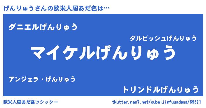 | 男性向けラノベタイトル風あだ名 | 『げんりゅうの憂鬱』 |