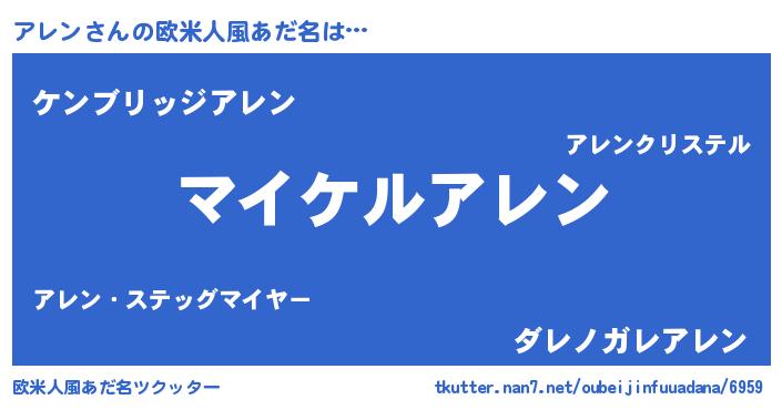 | 意味不明あだ名 | 『ペロリンアレン』『自称アレン』 |