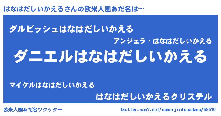 | 男性向けラノベタイトル風あだ名 | 『おまえをオタクにしてやるから、俺をはなはだしいかえるにしてくれ! 』 |