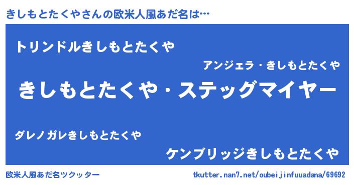 | 男性向けラノベタイトル風あだ名 | 『うちのきしもとたくやが世界を掌握している!』 |