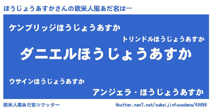 | 男性向けラノベタイトル風あだ名 | 『おまえをオタクにしてやるから、俺をほうじょうあすかにしてくれ! 』 |