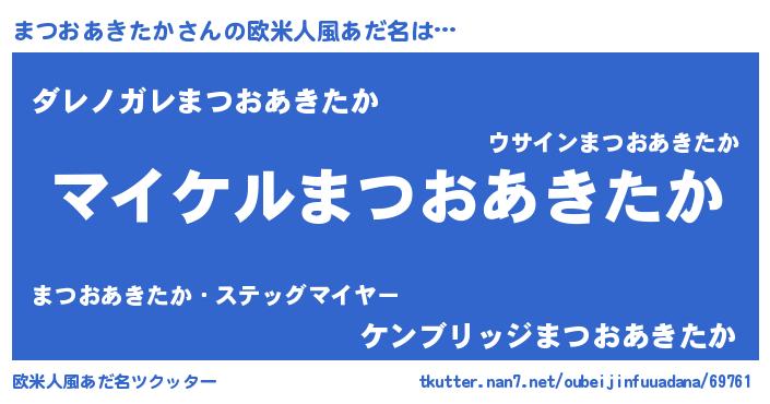 | 女子向けラノベタイトル風あだ名 | 『まつおあきたか姫と円卓の騎士』 |