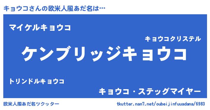 | 男性向けラノベタイトル風あだ名 | 『Re:キョウコから始める異世界生活』 |