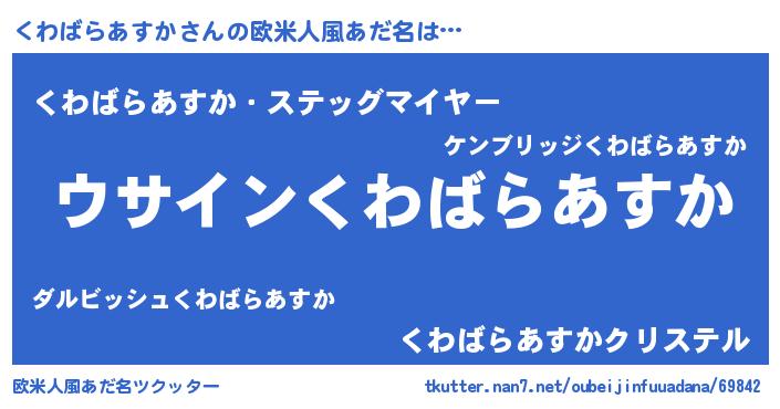 | 女子向けラノベタイトル風あだ名 | 『くわばらあすかの卵を拾いまして』 |