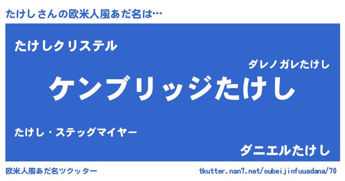 | ファンタジー風あだ名 | 『ゼタケトゥ』『エターナルタケシー』 |