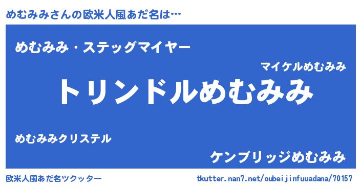 | 男性向けラノベタイトル風あだ名 | 『めむみみ~年齢イコール彼女いない歴の魔法使い~』 |