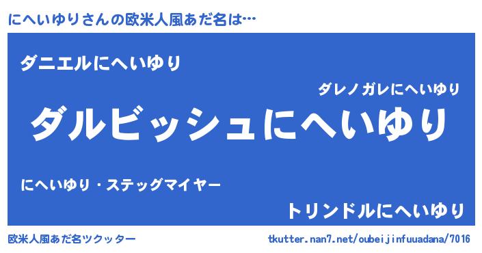 | 意味不明あだ名 | 『永久保存にへいゆり』『自称にへいゆり』 |