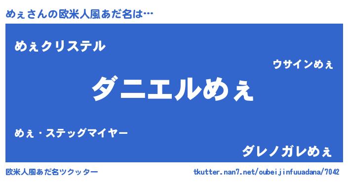 | 男性向けラノベタイトル風あだ名 | 『おまえをオタクにしてやるから、俺をめぇにしてくれ! 』 |