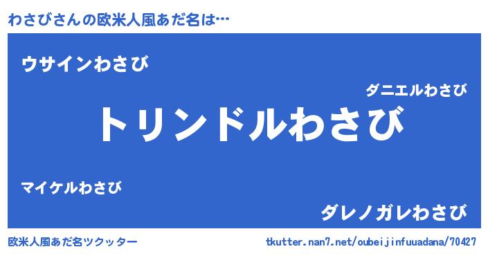 | 男性向けラノベタイトル風あだ名 | 『ワサビスレイヤー』『魔弾の王とわさび』 |