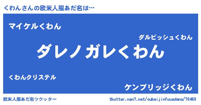 | 男性向けラノベタイトル風あだ名 | 『魔弾の王とくわん』 |