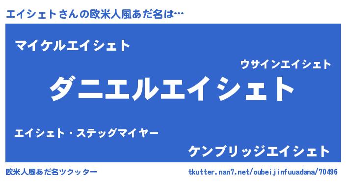 | ヒーロー風カッコイイあだ名 | 『天空の使者エイシェト』『暗黒騎士エイ』 |