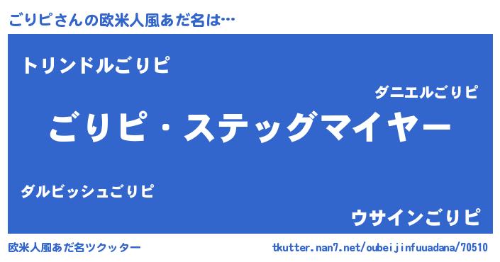 | ピコ太郎風あだ名 | 『ゴリ十郎』『ゴゴ太郎』『ピコゴ郎』 |