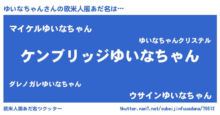 | ピコ太郎風あだ名 | 『ユコ六郎』『ユイ三郎』『ピユ一郎』 |