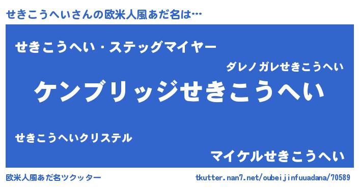 | 男性向けラノベタイトル風あだ名 | 『Re:せきこうへいから始める異世界生活』 |