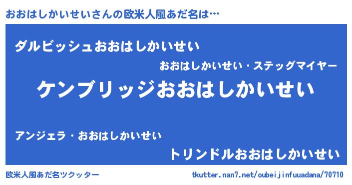 | 男性向けラノベタイトル風あだ名 | 『Re:おおはしかいせいから始める異世界生活』 |