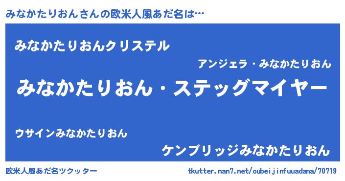 | 男性向けラノベタイトル風あだ名 | 『うちのみなかたりおんが世界を掌握している!』 |