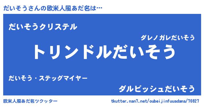 | 男性向けラノベタイトル風あだ名 | 『だいそう~年齢イコール彼女いない歴の魔法使い~』 |
