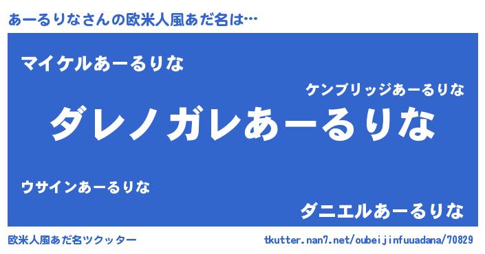 | 男性向けラノベタイトル風あだ名 | 『この素晴らしい世界にあーるりなを!』 |