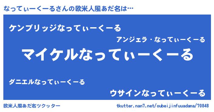 | ピコ太郎風あだ名 | 『ナコ四郎』『ナッ十郎』『ナナ太郎』 |