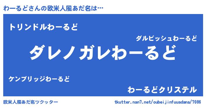 | 男性向けラノベタイトル風あだ名 | 『この素晴らしい世界にわーるどを!』 |