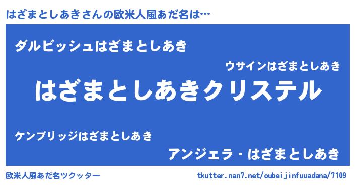 | 意味不明あだ名 | 『はざまとしあきフォーエバー』 |