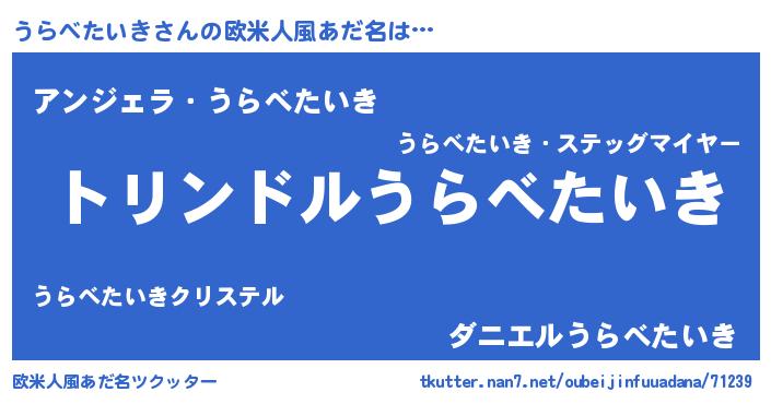 | 男性向けラノベタイトル風あだ名 | 『転生したらうらべたいきだった件』 |
