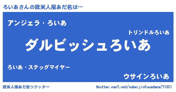 | 男性向けラノベタイトル風あだ名 | 『ろいあという概念が存在しない退屈な世界 』 |