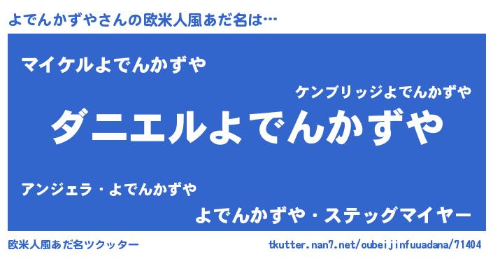 | ヘコむあだ名 | 『よでふぇ~』『よでんかずや(遠い目)』 |