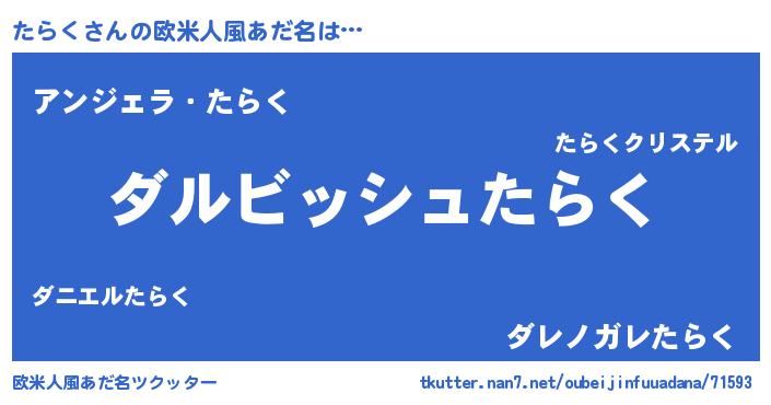 | 女子向けラノベタイトル風あだ名 | 『たらくの契約王妃』『たらく伯爵の花嫁』 |