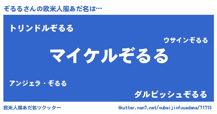 | 男性向けラノベタイトル風あだ名 | 『ぞるるの憂鬱』『ゾルルスレイヤー』 |