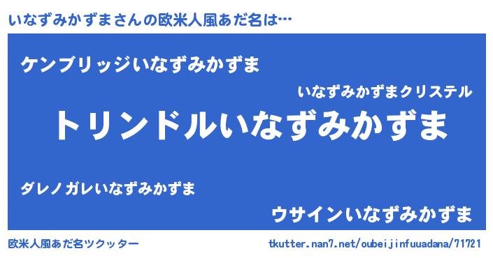 | 男性向けラノベタイトル風あだ名 | 『イナズミカズマスレイヤー』 |
