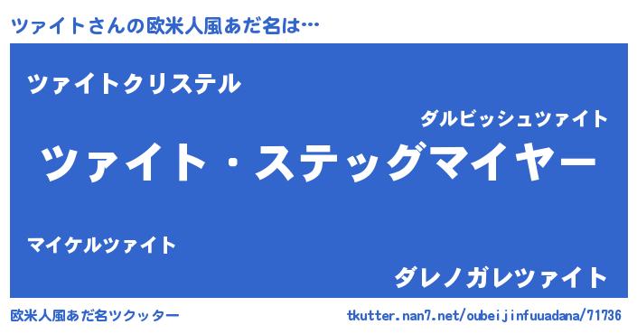 | 男性向けラノベタイトル風あだ名 | 『緋弾のツァイト』『魔弾の王とツァイト』 |