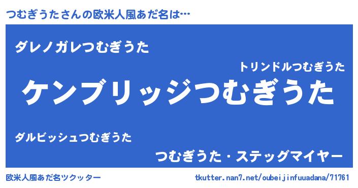 | 意味不明あだ名 | 『自称つむぎうた』『永久保存つむぎうた』 |