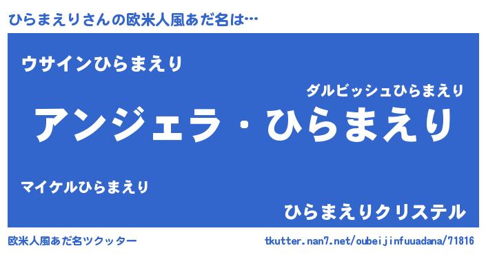 | 男性向けラノベタイトル風あだ名 | 『ひらまえりに滅ぼされるだけの簡単なお仕事です』 |