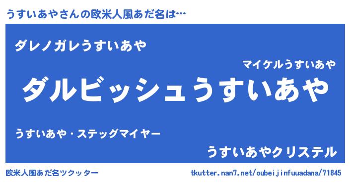 | 男性向けラノベタイトル風あだ名 | 『うすいあやという概念が存在しない退屈な世界 』 |