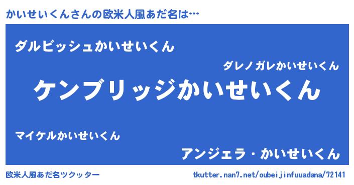| 男性向けラノベタイトル風あだ名 | 『Re:かいせいくんから始める異世界生活』 |