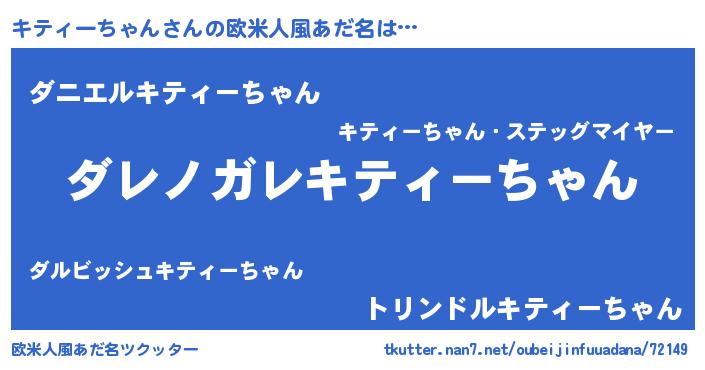 | 男性向けラノベタイトル風あだ名 | 『この素晴らしい世界にキティーちゃんを!』 |