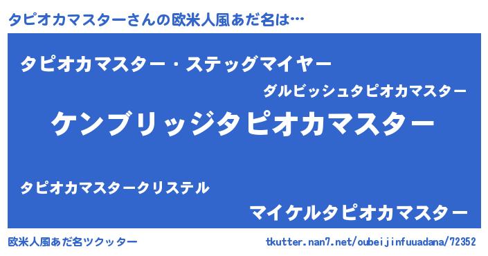 | 男性向けラノベタイトル風あだ名 | 『Re:タピオカマスターから始める異世界生活』 |