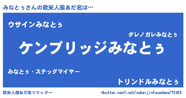 | 男性向けラノベタイトル風あだ名 | 『Re:みなとぅから始める異世界生活』 |