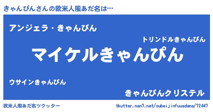 | 男性向けラノベタイトル風あだ名 | 『きゃんぴんの憂鬱』 |