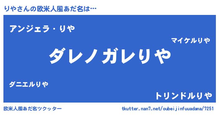 | ヘコむあだ名 | 『りやもー』『りや(苦笑)』『りやを』 |