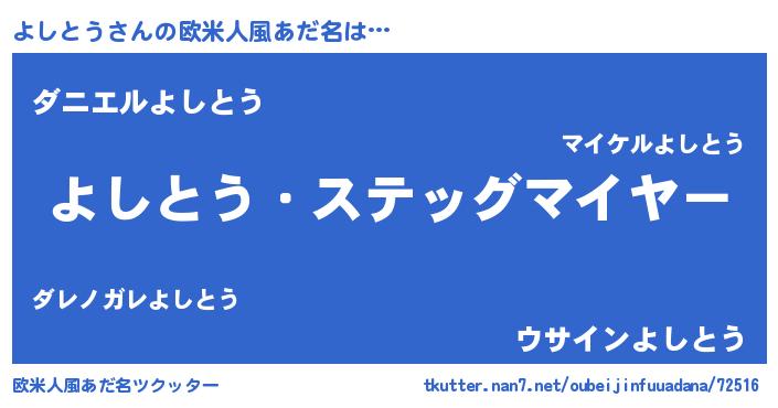 | 男性向けラノベタイトル風あだ名 | 『うちのよしとうが世界を掌握している!』 |