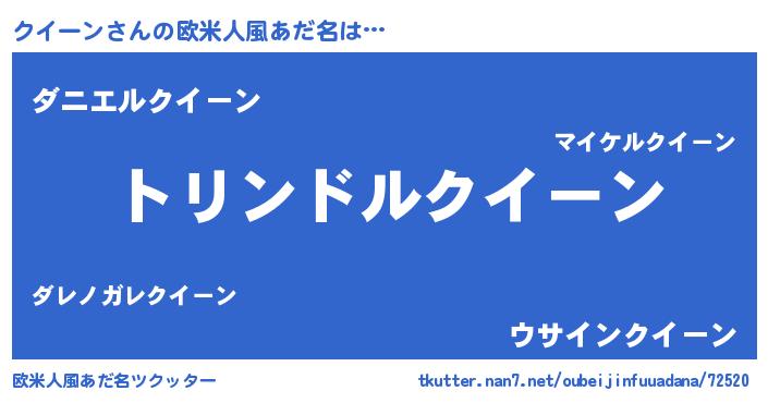 | 男性向けラノベタイトル風あだ名 | 『クイーン~年齢イコール彼女いない歴の魔法使い~』 |