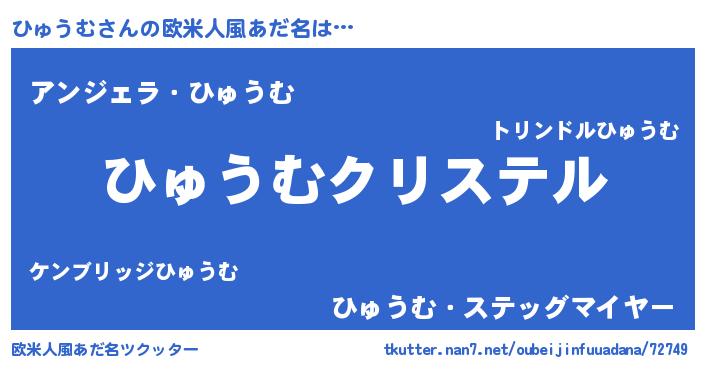 | 女子向けラノベタイトル風あだ名 | 『ひゅうむの雑貨屋さん』『闇のひゅうむ』 |