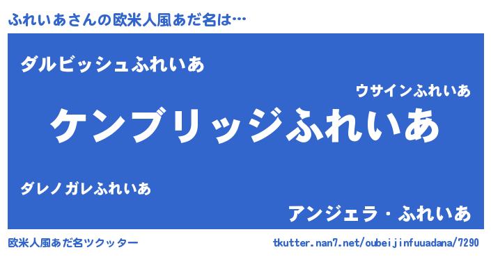 | 女子向けラノベタイトル風あだ名 | 『ふれいあなんてお断りですっ。』 |