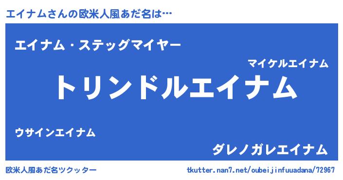 | 男性向けラノベタイトル風あだ名 | 『エイナム~年齢イコール彼女いない歴の魔法使い~』 |