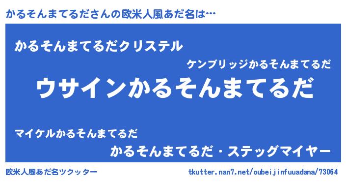 | 男性向けラノベタイトル風あだ名 | 『かるそんまてるだの嫁は女の子じゃないと思った?』 |