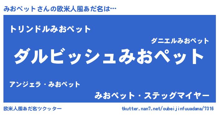 | 男性向けラノベタイトル風あだ名 | 『みおペットという概念が存在しない退屈な世界 』 |