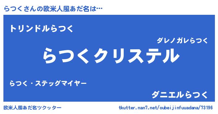 | 女子向けラノベタイトル風あだ名 | 『らつく伯爵の花嫁』『らつく恋絵巻』 |