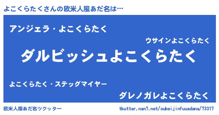 | 男性向けラノベタイトル風あだ名 | 『よこくらたくという概念が存在しない退屈な世界 』 |